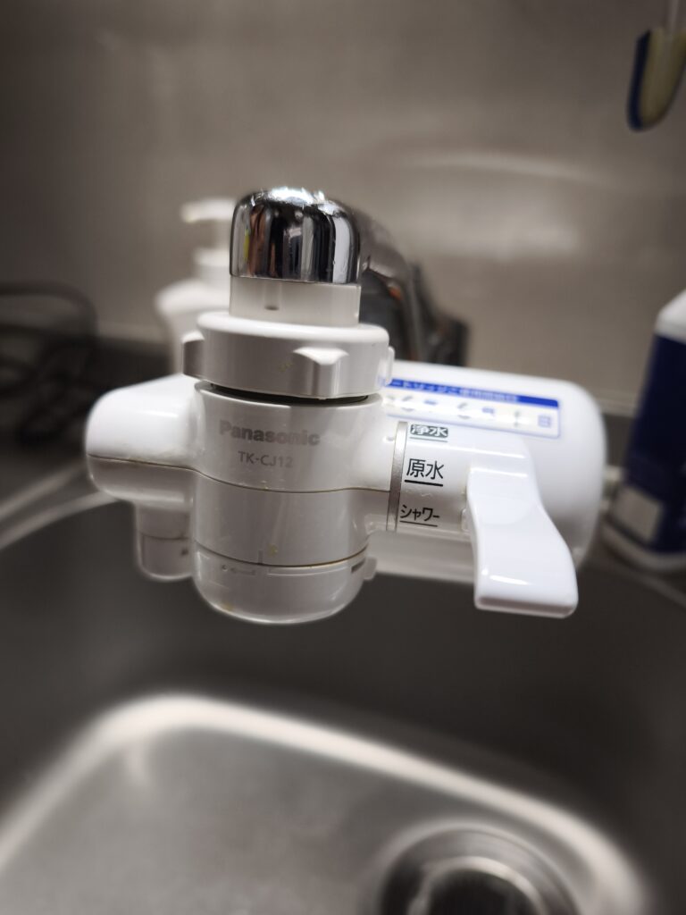 西園寺自宅のキッチンでは、この浄水器を使っています。1のポットよりは高額です。フィルターも1本1,000円強します。