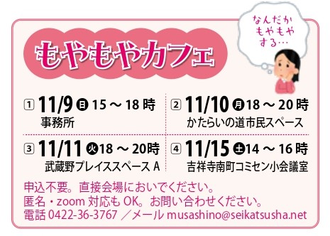 11月9日(日)15~18時。武蔵野生活者ネット事務所。